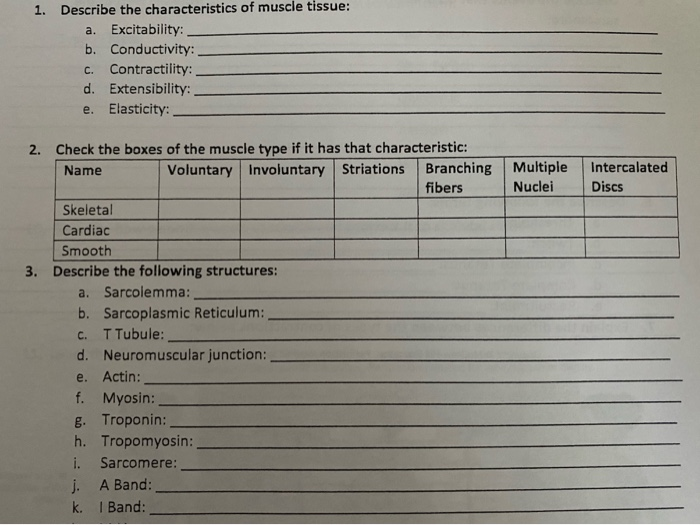 Solved 1 Describe The Characteristics Of Muscle Tissue A Chegg Com